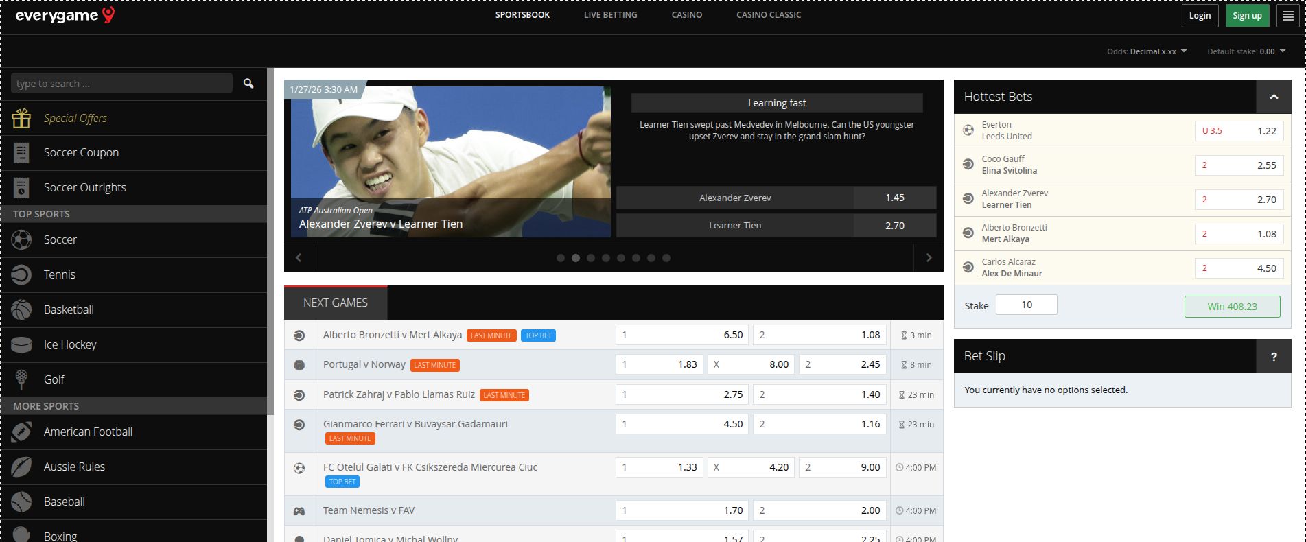 Everygame is a well-established name among offshore sportsbooks. It covers major sports but also offers niche markets like cricket and other international competitions. This broad coverage makes Everygame a solid choice for offshore sports betting across both popular and lesser-known events.